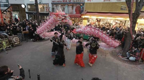 Paris Lion Sport Association, danse du dragon. Représentation lors du Nouvel An Lunaire 2025, Paris XIIIe © Paris Lion Sport Association