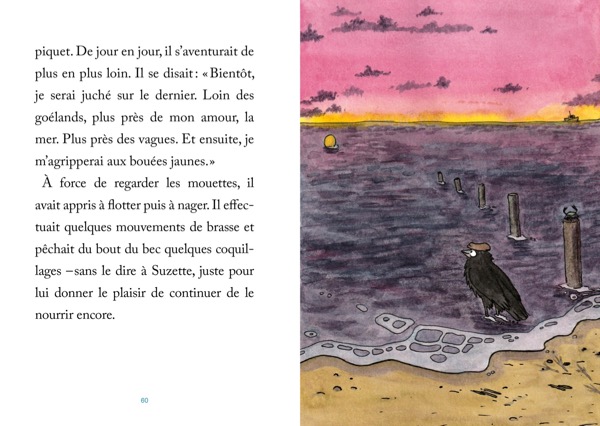 L’apprentissage des éléments naturels, de la force du vent et des vagues, n’est pas de tout repos pour le corbeau plus habitué au climat tempéré parisien. Sans parler de l’accueil glacial des goélands, qui n’ont pas envie de partager leur subsistance naturelle et trouvent les plumes du corbeau trop noires. Le lien entre Niko et Suzette résistera-t-il à la pression des autres ?