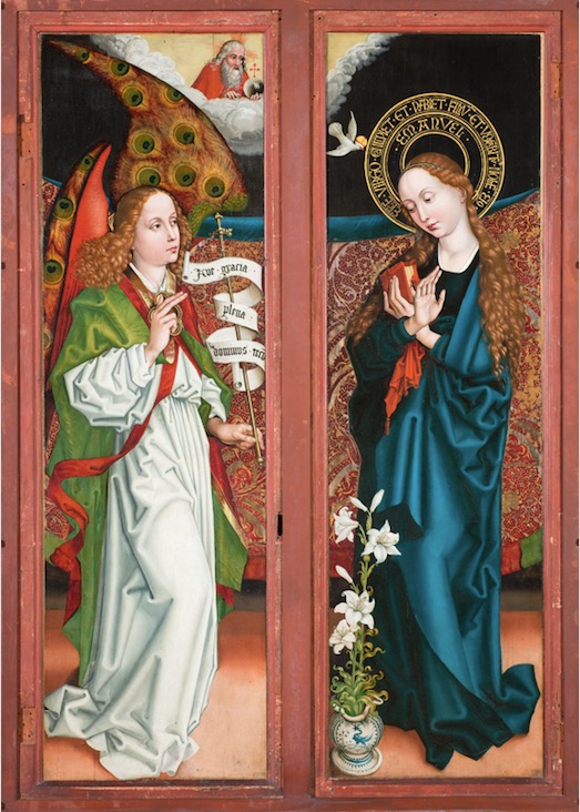 Si Schongauer semble avoir produit avec son atelier de nombreuses peintures, il ne reste aujourd’hui que trois grands retables et quatre petits panneaux de dévotion privée, réunis pour la première fois dans l’exposition (sauf La Sainte Famille de Vienne qui n’a pu être déplacée).