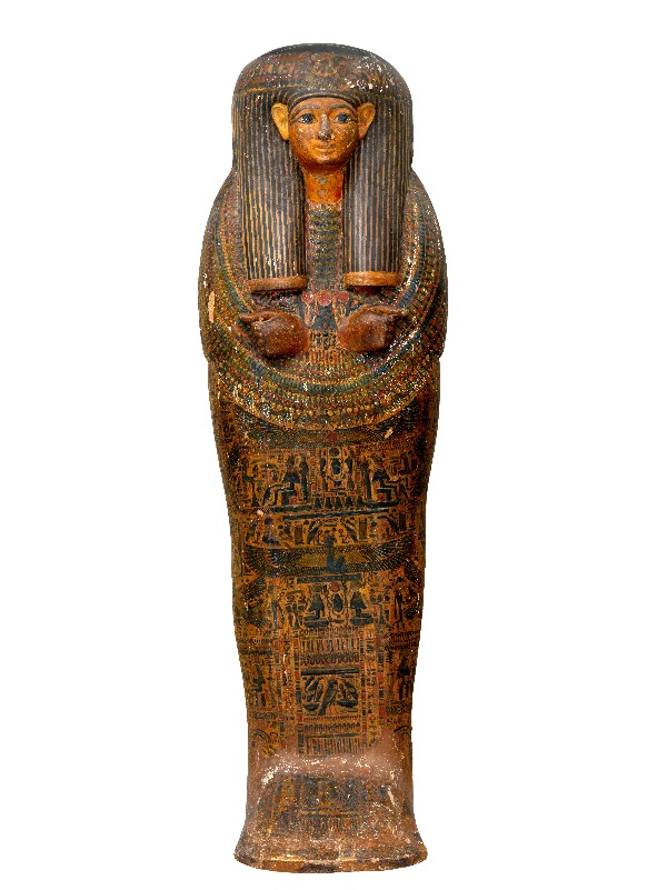 Sarcophage d’une chanteuse d’Amon de Karnak. Sur ce sarcophage est peinte une scène de pesée de l’âme, ou psychostasie, qui est l’épreuve finale du défunt pour accéder à l’au-delà. Lors de la pesée du cœur face à la plume de la déesse Maât, les actions de la vie du défunt sont évaluées pour lui permettre ou non l’accès au royaume d’Osiris. Conservé au Musée du Louvre, Département des Antiquités égyptiennes © Musée du Louvre, Dist. GrandPalaisRmn / Georges Poncet