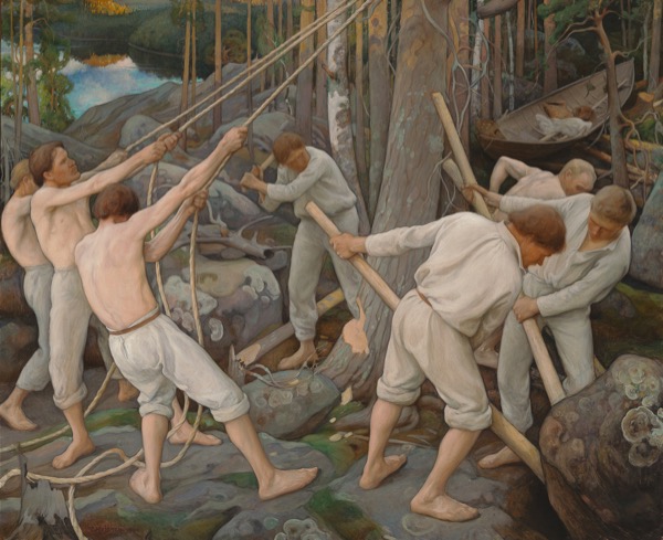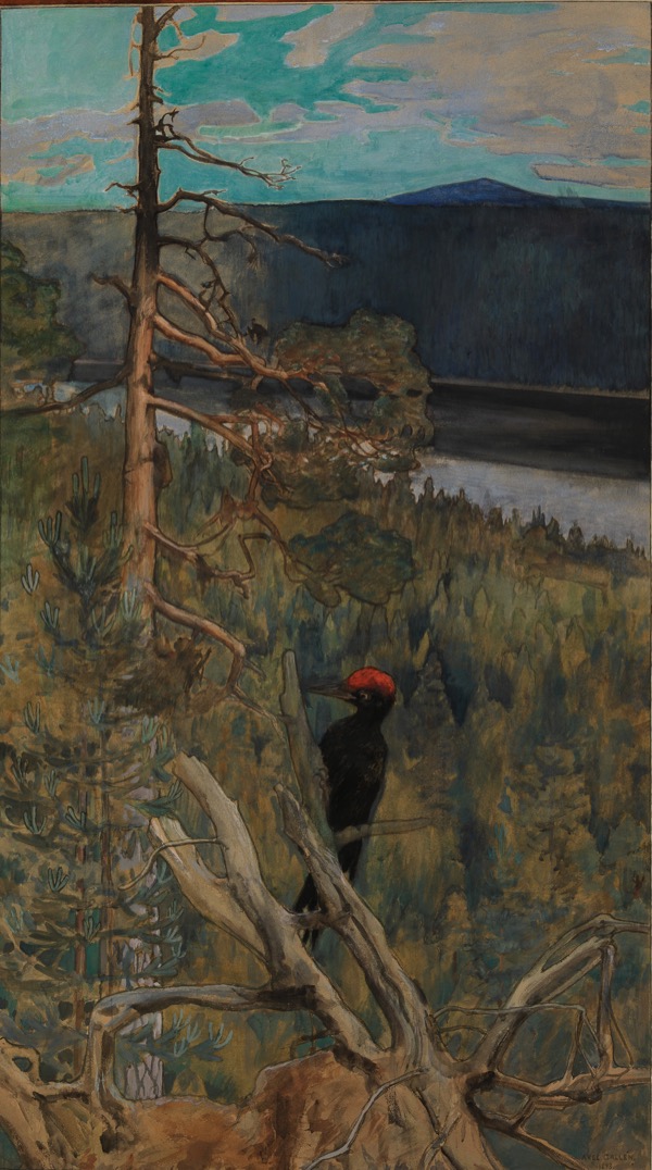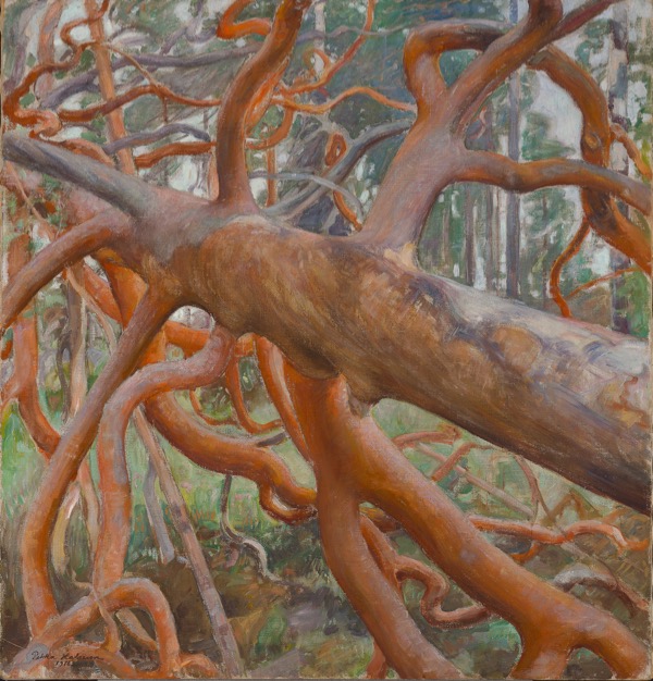 Peintre écologique avant l’heure, Pekka Halonen s’inquiète et s’insurge contre les nombreuses coupes du bois (Grand pin de Kotavuori, 1916), richesse naturelle du pays.