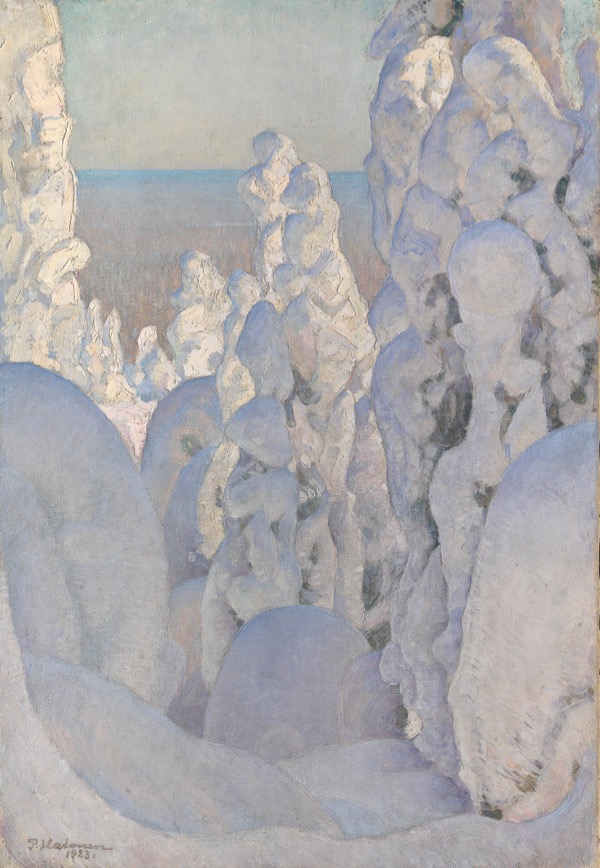 Au fil de la saison, ses oeuvres deviennent de moins en moins figuratives comme dans Forêt en hiver, Kinahmi (1923), où les arbres recouverts d’un épais manteau de neige forment une vision presque abstraite.