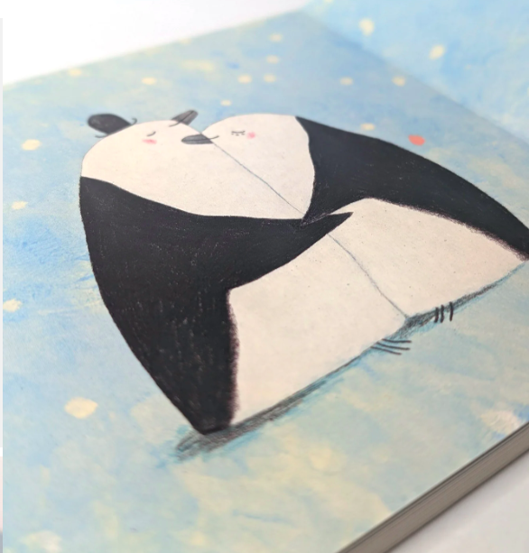 Se coudre une écharpe ? Allumer un feu ? Faire du patin à glace ? Rien n’est vraiment concluant. Jusqu’à se qu’il aperçoive une autre pingouin…