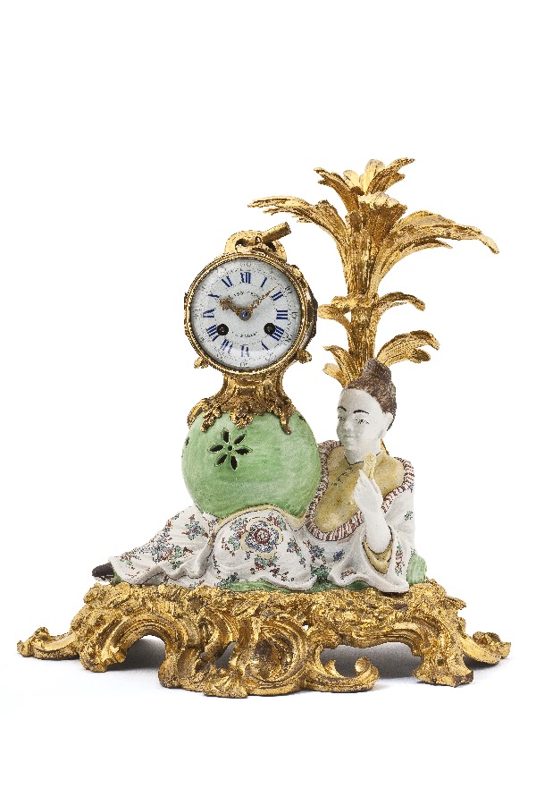 Pendule — Ladouceur à Paris, manufacture de Chantilly, vers 1745. Porcelaine tendre, bronze ciselé et doré © Les Arts Décoratifs / Christophe Dellière